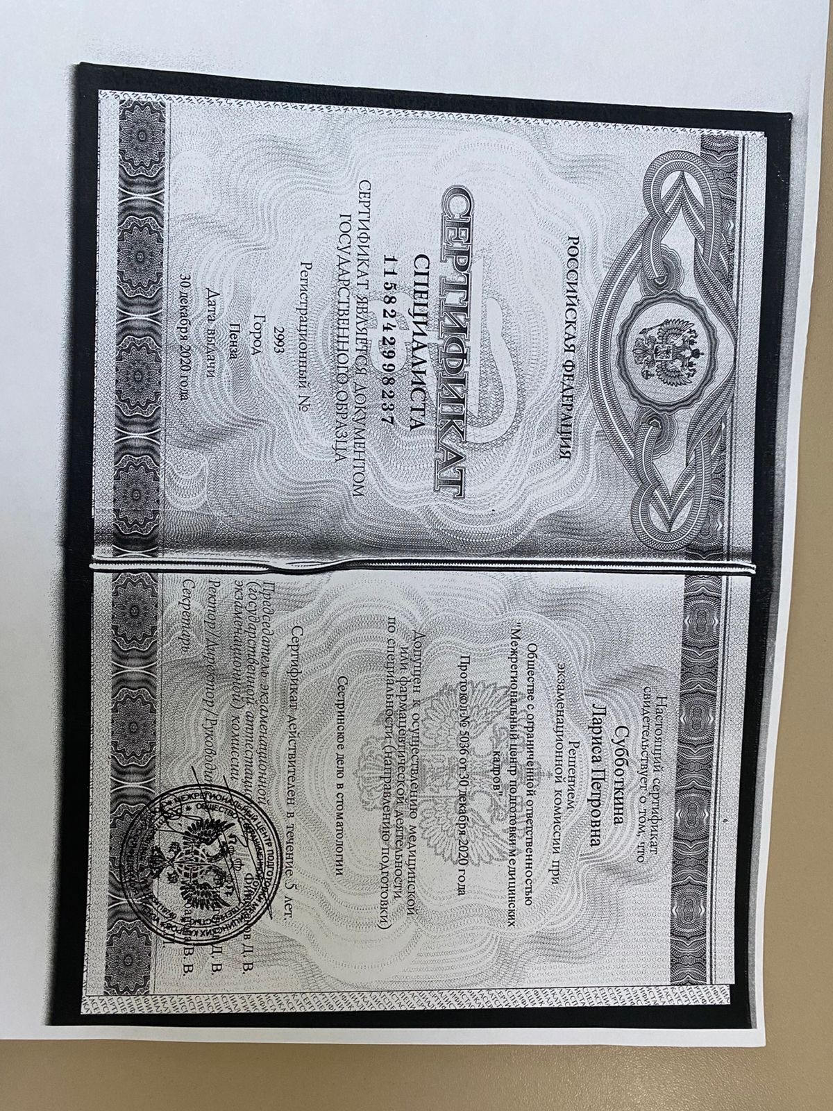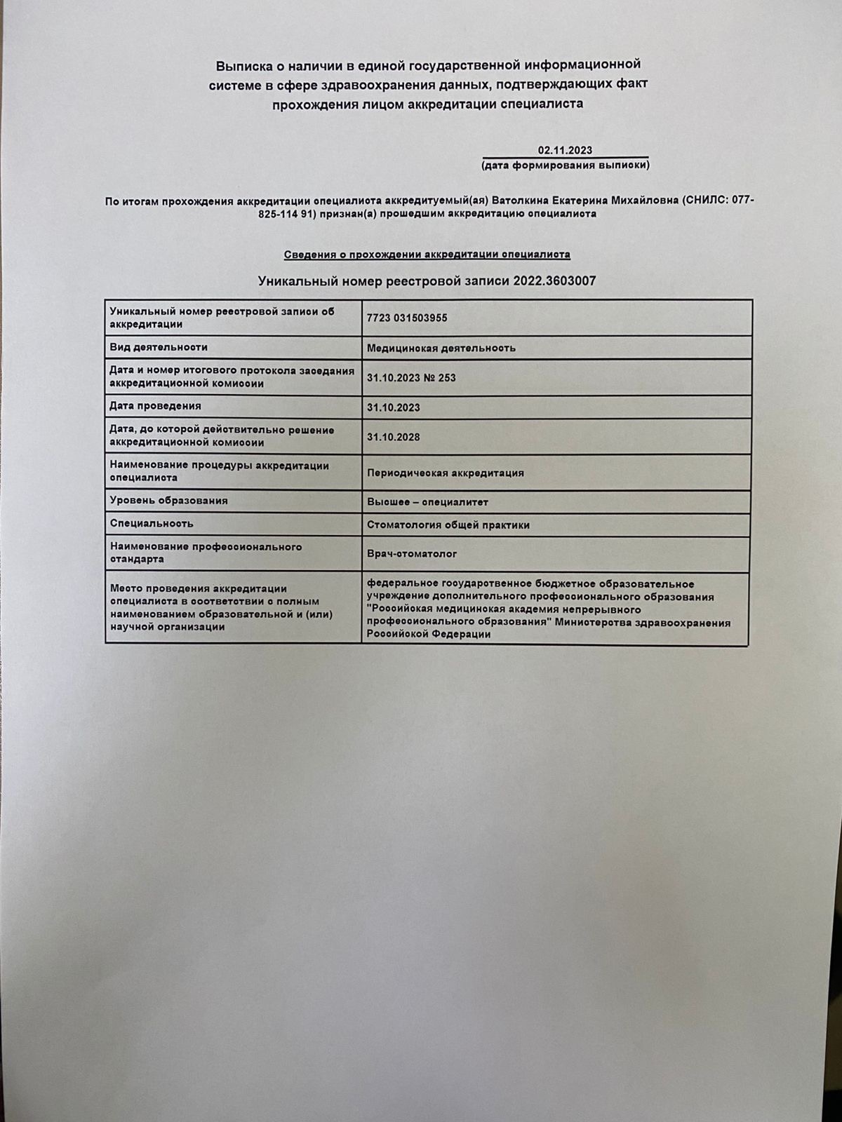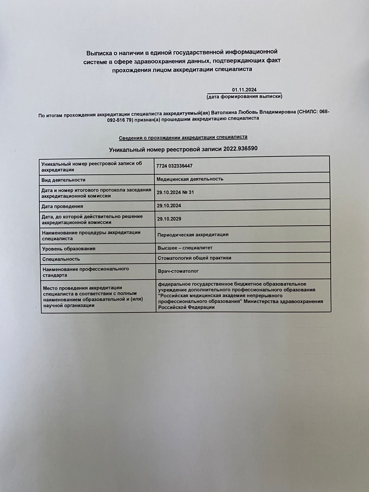 • Аккредитация специалиста: Смотреть документ