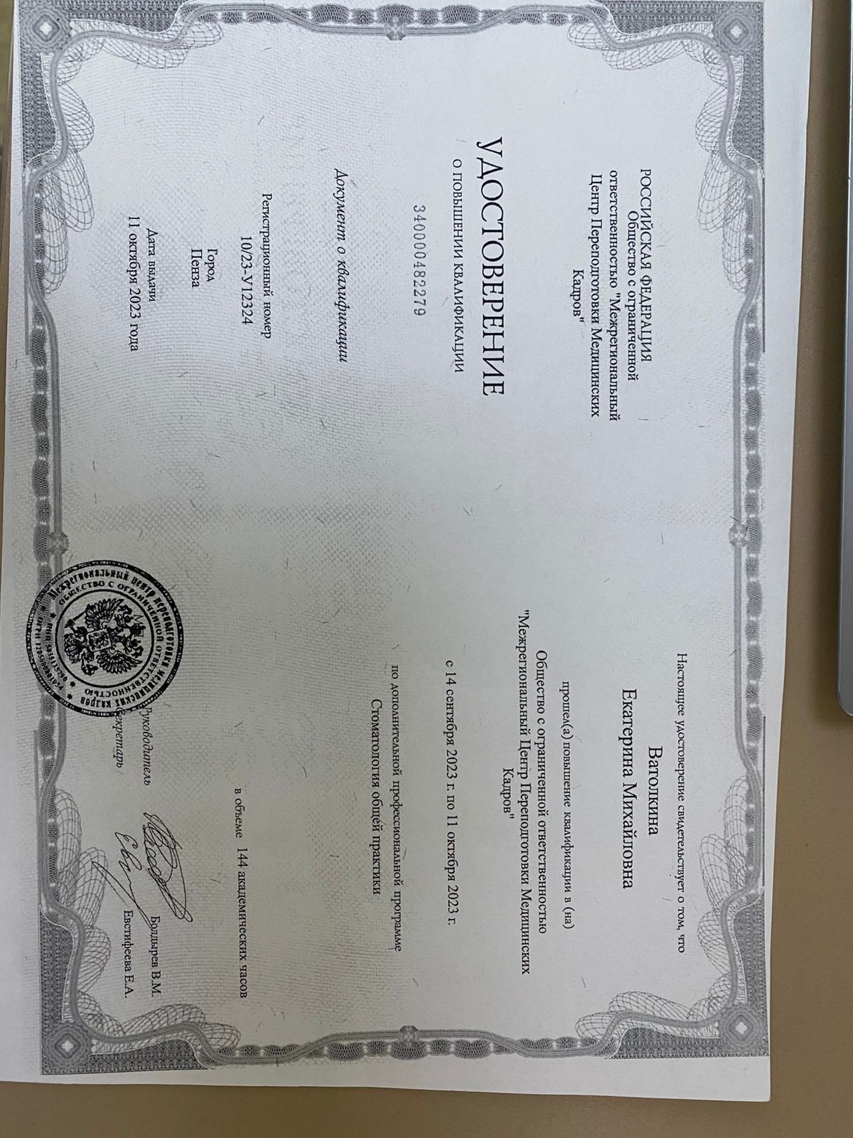 • Повышение квалификации: Смотреть удостоверение
